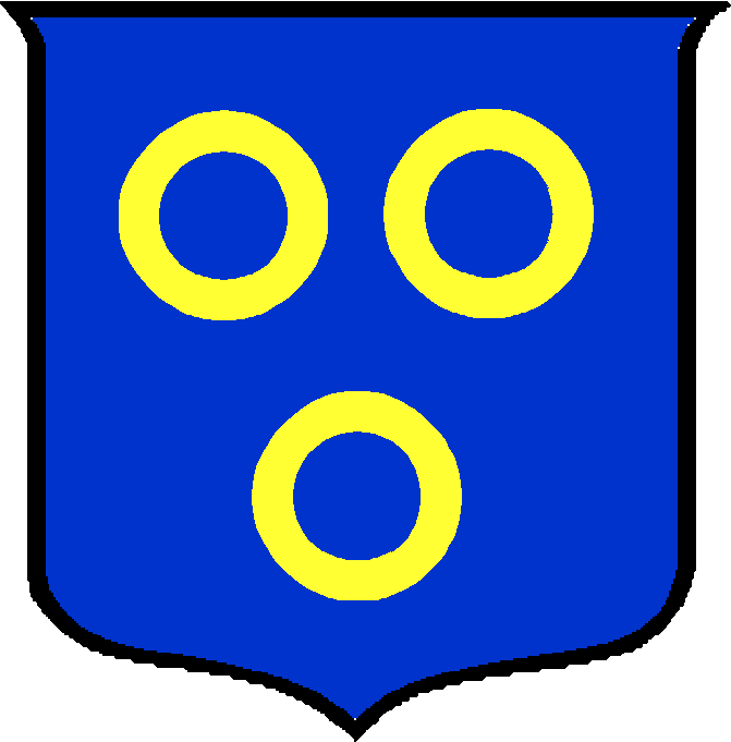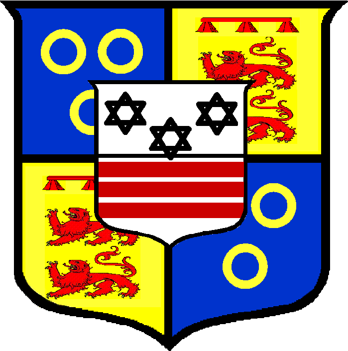 Écartelé : en un et quatre d'azur à trois besants d'argent; deux et trois d'or à deux lions couronnés de gueules; brochant sur le tout d'argent à trois doubles triangles de sable