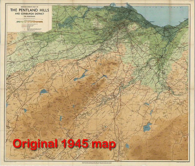 John Bartholomew & Son Ltd, Map of the Pentland Hills and Edinburgh District, 1945.